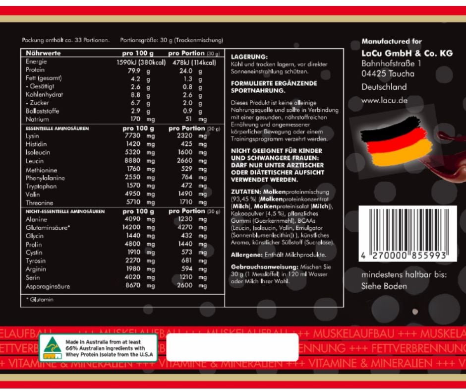 - Lacu Whey Protein được nhập khẩu nguyên hộp bởi Lacu Việt Nam.